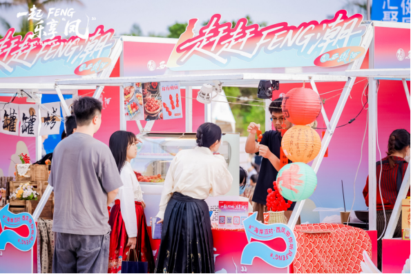 “引领 FENG 潮市集” 是本次活动的另一大亮点,将 “传统凤香” 与 “潮流生活” 深度融合。调酒师用西凤酒调出 “凤香气泡饮”,高颜值的酒品吸引年轻人排队打卡;推出的 “黄桂凤香冰糖葫芦”,将陕西特色黄桂酱&糖葫芦&白酒结合,甜爽解腻;海南特色手工艺用贝壳制成与西凤酒酒海模具限定周边成为收藏热门,黎锦挂饰、椰壳凤鸟吊坠—— 这些融合非遗与地域文化的产品,让西凤酒从“饮品”升级为“文化载体”。