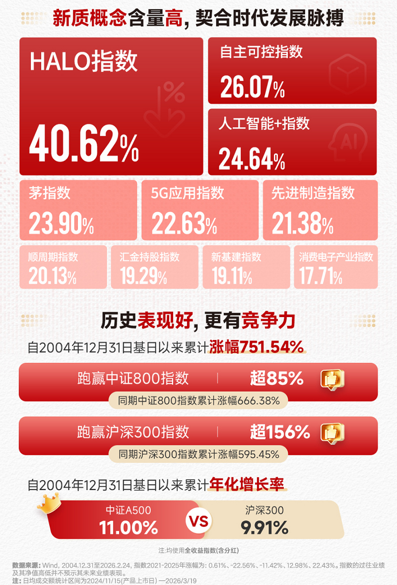 指数层面,可以关注一下华夏中证A500ETF联接Y(022979)。中证A500指数不仅覆盖了各行业龙头,行业分布也更贴合“新质生产力”发展方向,具备长期配置价值。